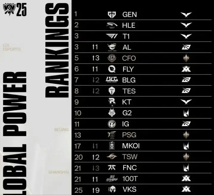 最近拳头官方也是更新了S15战队实力榜单,其中GEN、HLE、T1照样是S15世界赛最有希望夺冠的三支战队,其余战队AL和CFO都是提升排名,而LPL夺冠希望BLG和TES则是在榜单当中下滑严重,目前BLG已经被FLY给超越。不少观众认为这个榜单很合理,当然也有观众认为AL的排名过于太低,毕竟AL在瑞士轮先后暴打GEN和HLE,讲道理AL应该排进前三才对。